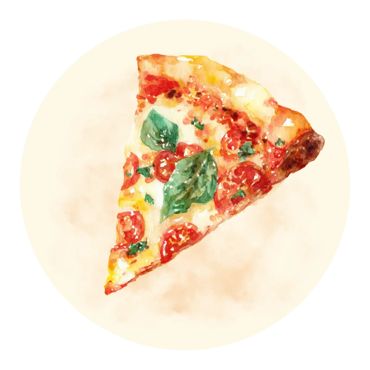 Salsa pomodoro, mozzarella, olive nere, capperi, pomodori freschi, basilico